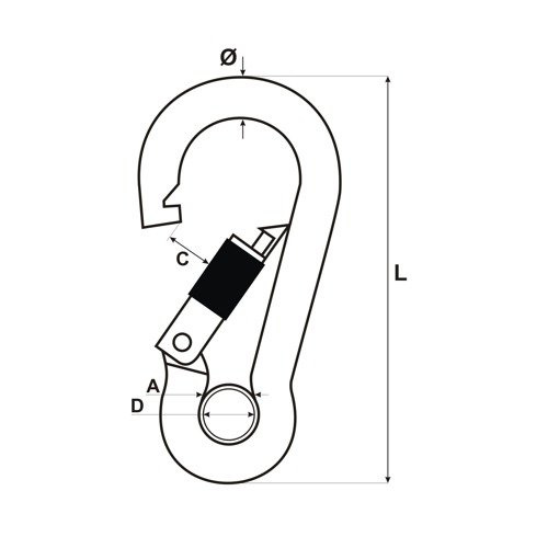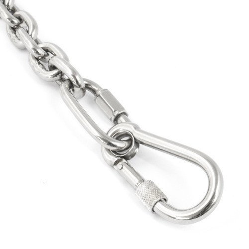 Le mousqueton en acier inoxydable est utilisé dans la construction et les sports d'escalade. Il est également souvent utilisé dans la voile. Grâce à sa conception, c'est-à-dire sa forme allongée ou ovale combinée au ressort de basculement utilisé pour fermer la serrure, il constitue l'élément de connexion idéal pour les câbles élastiques. Il est souvent appelé mousqueton de pompier ou mousqueton à crochet.