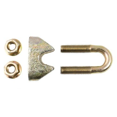 Les serre-cordes sont un ensemble composé d'un boulon en U, d'une mâchoire et d'écrous qui permettent de comprimer deux sections de cordage pendant que les écrous sont serrés.