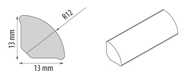 Le quart de rond est utilisé pour la finition et le masquage des angles intérieurs des lambris, des plans de travail, des fenêtres et des appuis de fenêtre. Permet une finition esthétique tout en dissimulant les irrégularités et les interstices.