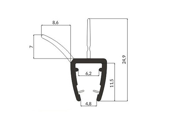 Le joint illustré convient pour des épaisseurs de verre allant de 6 à 8 mm inclus.