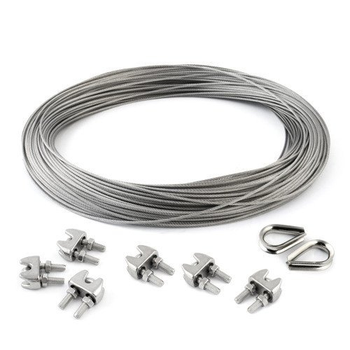 KIT : Corde en acier inoxydable 4mm 7x7 - 20m, collier de serrage - 8 pcs.manchette - 4 pièces.