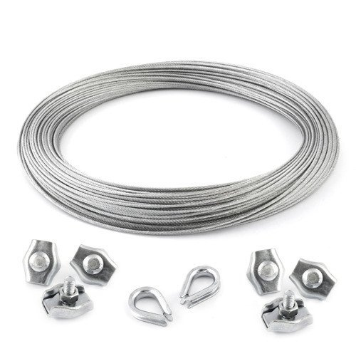 KIT : corde galvanisée 3mm 6x7 - 15m, collier de serrage simple - 8 pcs.manchette - 4 pièces.