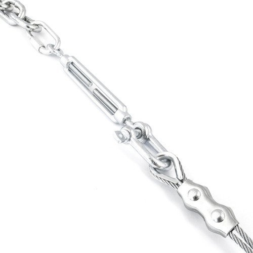 KIT : corde galvanisée de 3 mm 6x7 - 10 m, pince à double selle - 6 pièces.manchette - 2 pièces.