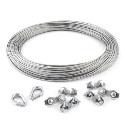 KIT : corde galvanisée de 4 mm 6x7 - 5 m, pince à double selle - 6 pièces.manchette - 2 pièces.
