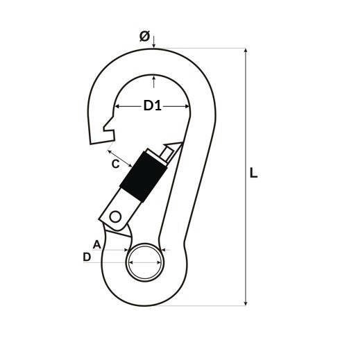 Le mousqueton en acier inoxydable est utilisé dans la construction et les sports d'escalade. Il est également souvent utilisé dans la voile. Grâce à sa conception, c'est-à-dire sa forme allongée ou ovale combinée au ressort de basculement utilisé pour fermer la serrure, il constitue l'élément de connexion idéal pour les câbles élastiques. Il est souvent appelé mousqueton de pompier ou mousqueton à crochet.
