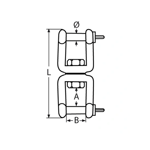 Un émerillon en acier inoxydable de type manille à manille (fourche à broche), également appelé extenseur, se compose de deux poignées reliées par un axe court qui leur permet de tourner l'une par rapport à l'autre.