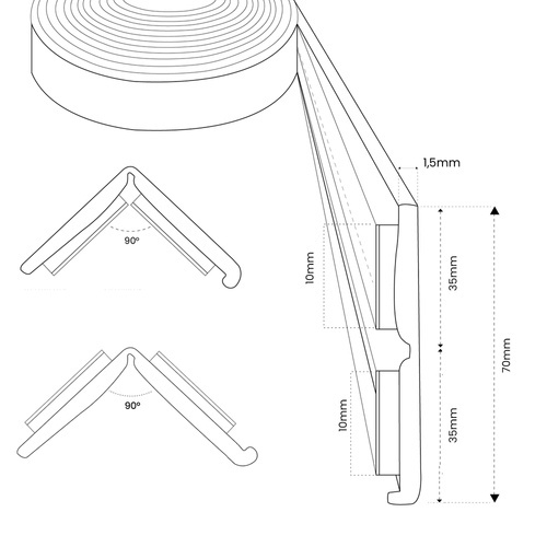 Ils sont fabriqués en PVC souple, ce qui permet de les d'être coupés à la bonne taille à n'importe quel angle.
